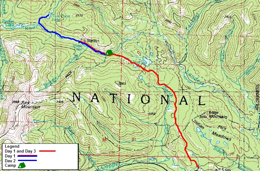 We went back down the trail and although we could see Parker Lake to the west we decided to return to camp. The trip back was uneventful and despite the mostly uphill trail it seemed to take about half the time as the trip out.