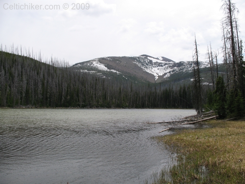 After completing our mandatory half day at work to wrap things up, we grabbed lunch and then drove over the pass to the Indian Meadows trailhead. The weather was great with temps in the 70s and just a light breeze. The hike in to the junction with the Main Line trail and the trail to Heart Lake was just like it has been the last two years, although the trail was very dry and dusty considering the amount of moisture we have been receiving. At the junction we took the Main Line, left fork, for the first time and were treated to a fairly steep and what seemed lengthy uphill climb before dropping down into the drainage for Webb Lake. The trail had been cleared of all deadfall and, besides the elevation gain, it was a fairly easy hike. After dropping down to the North Fork of the Blackfoot River, we crossed it using a rather bouncy foot bridge of sorts. We then continued to Webb Lake where we found the Forest Service cabin occupied.